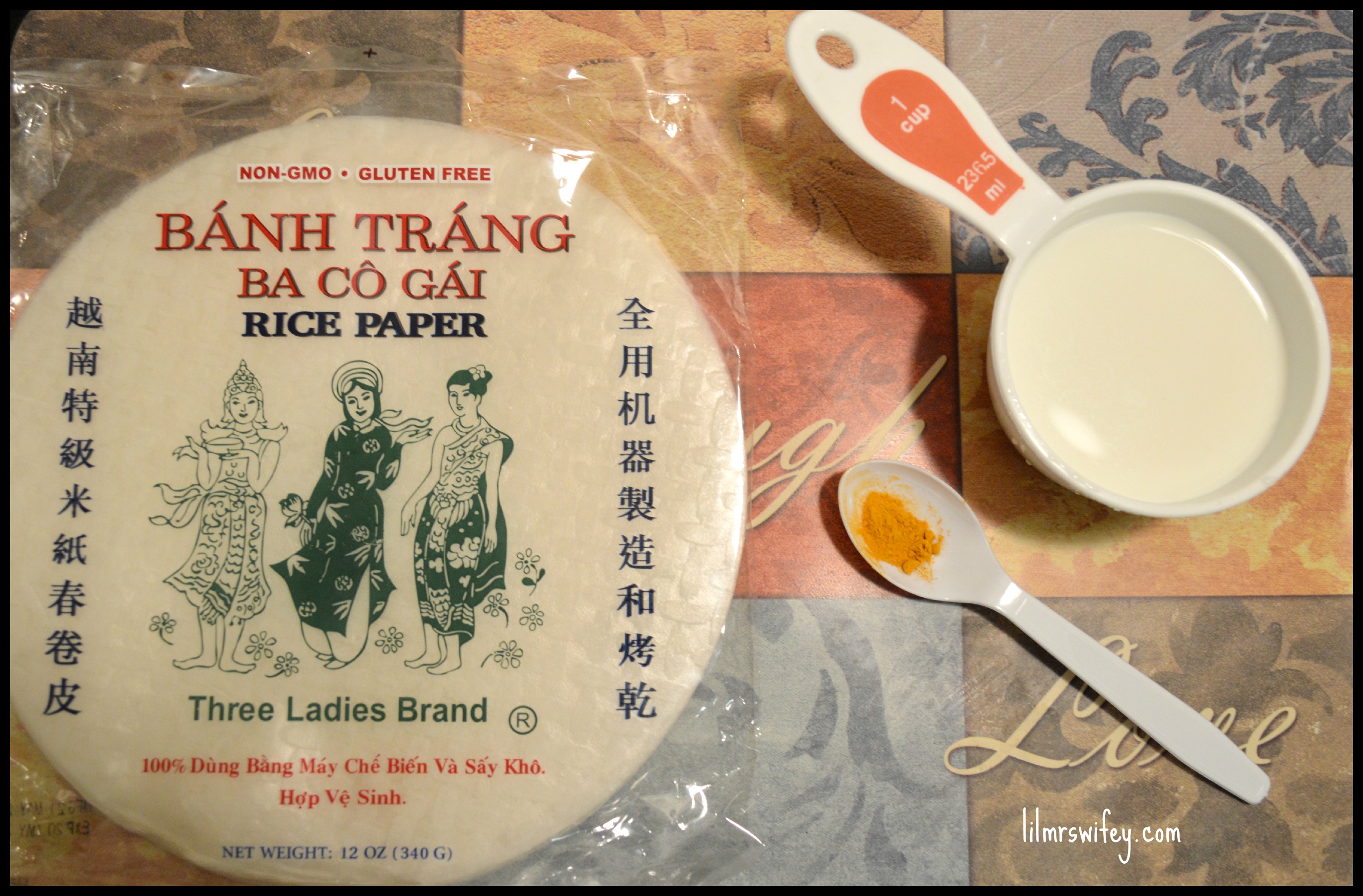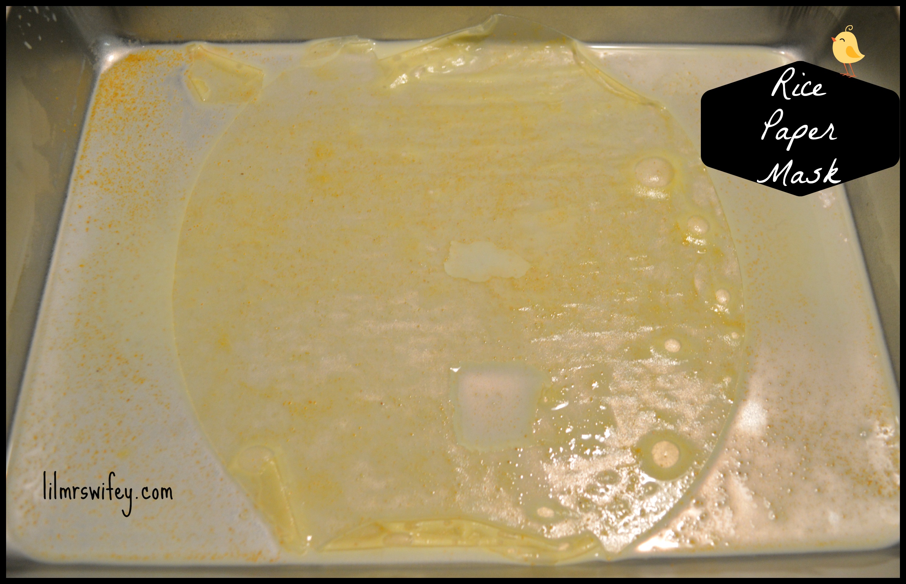 PREPARATION: Take 1 rice paper and gently transfer it to a flat plate filled with milk and a pinch of turmeric. After 50-60 seconds, it will become soft and slimy.Remove the rice paper and cut out areas for your eyes and nose.