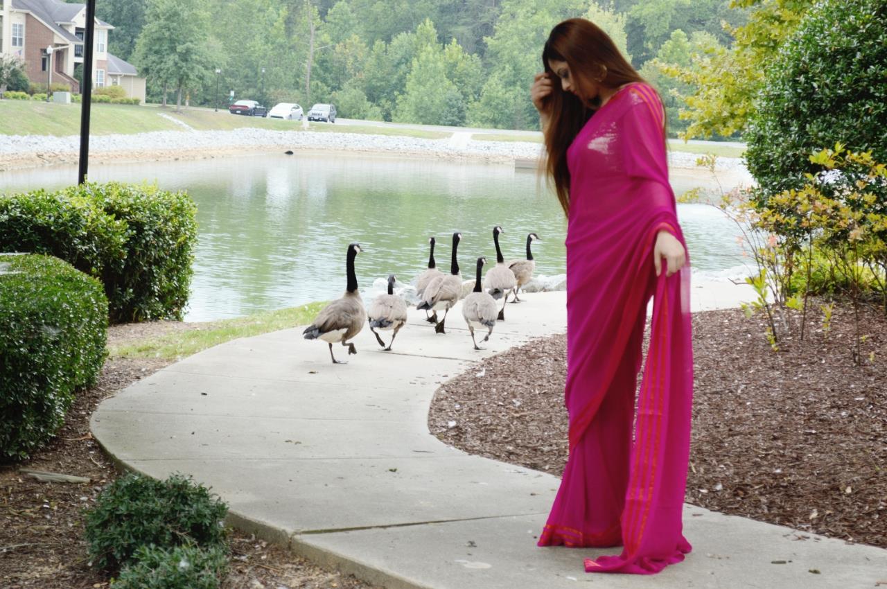 Earlier last month I received a beautiful saree from one of India’s leading traditional wear houses-Triveni Ethnics, and I couldn’t be more happier.*happy dance*. I was oh so excited to feature my first traditional Indian OOTD on the blog and hubz was such a gem, lugging the camera around and clicking like a trillion shots. I decided to use the beautiful locale of my apartment complex, well it’s really a blessing to live in the lap of nature*touchwood*!